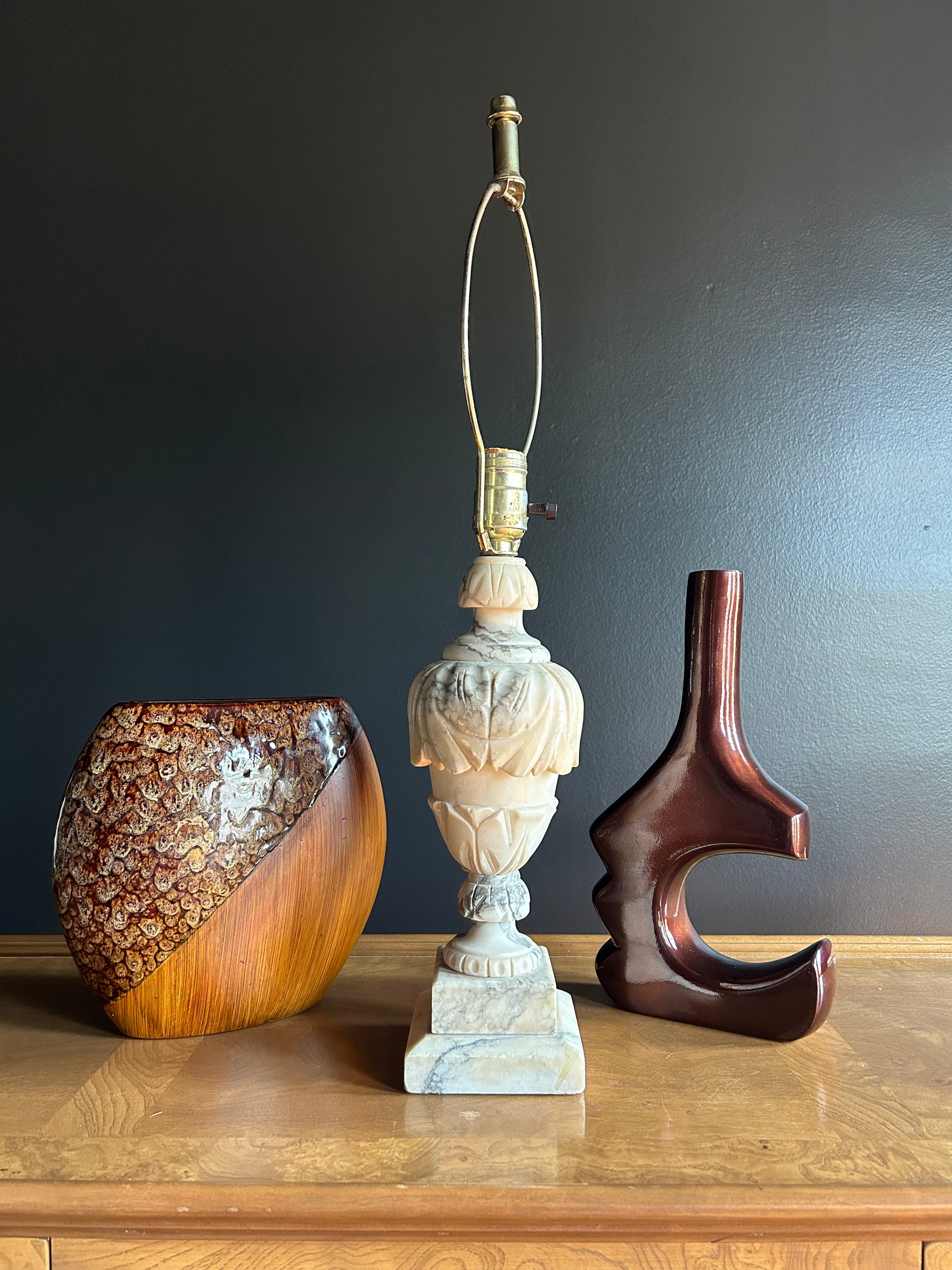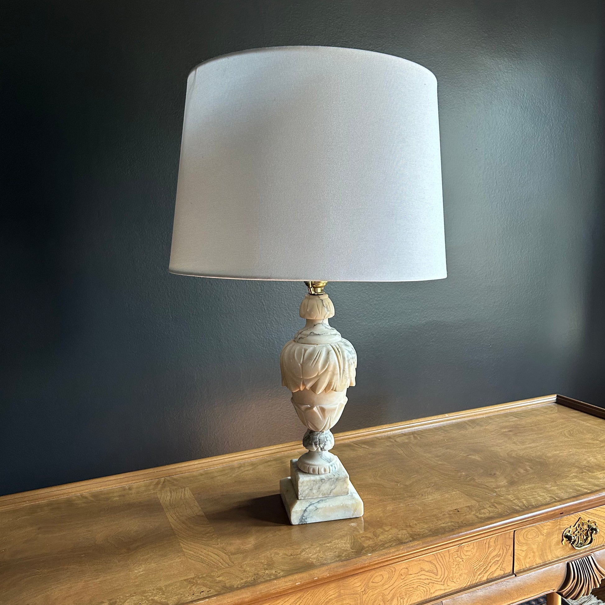 alabaster lamp, large and ornate