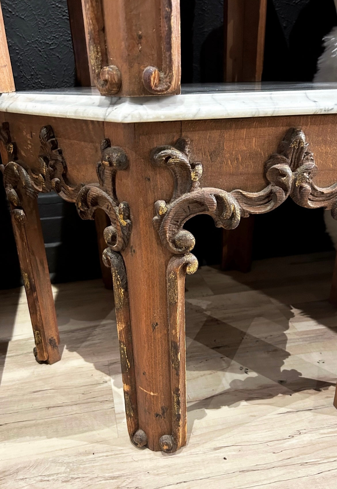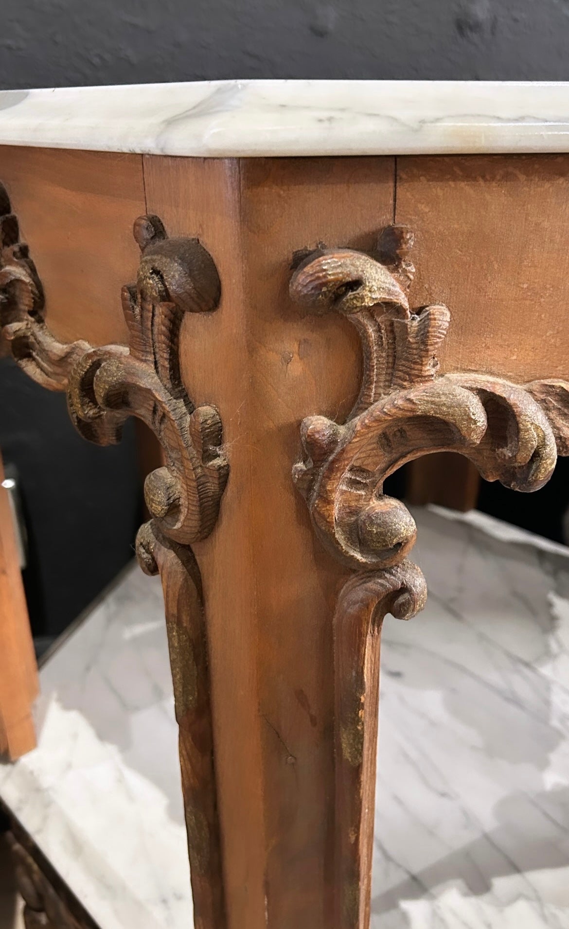 antique, ornate Italian side tables with marble top (pair)