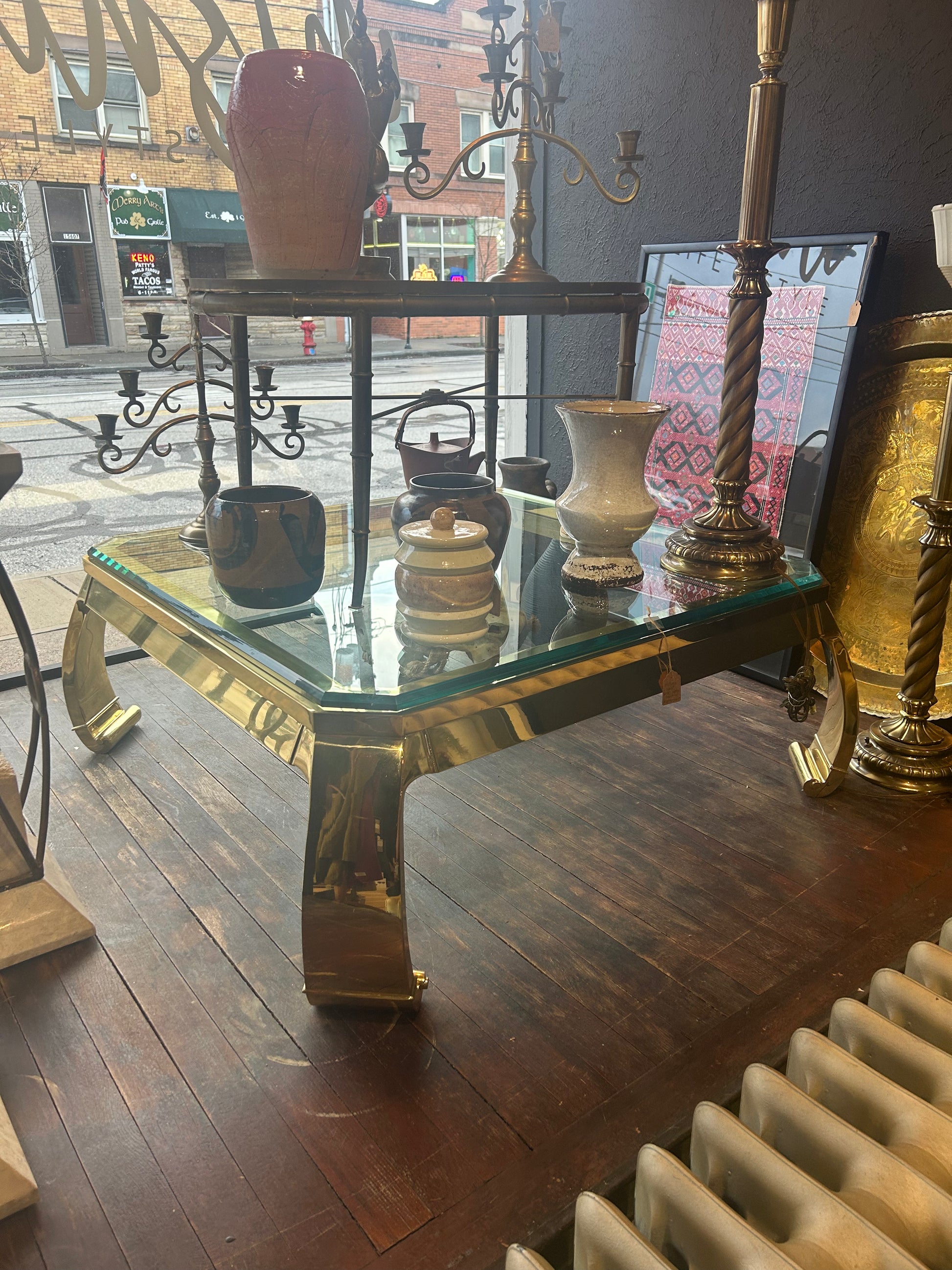 Ming-legged, Mastercraft brass coffee table by Karl Springer