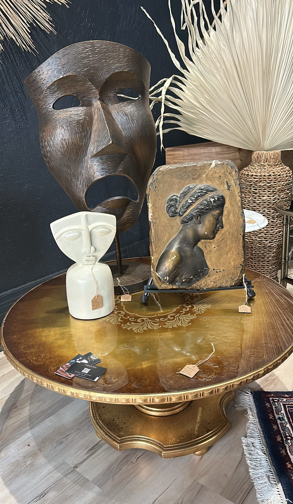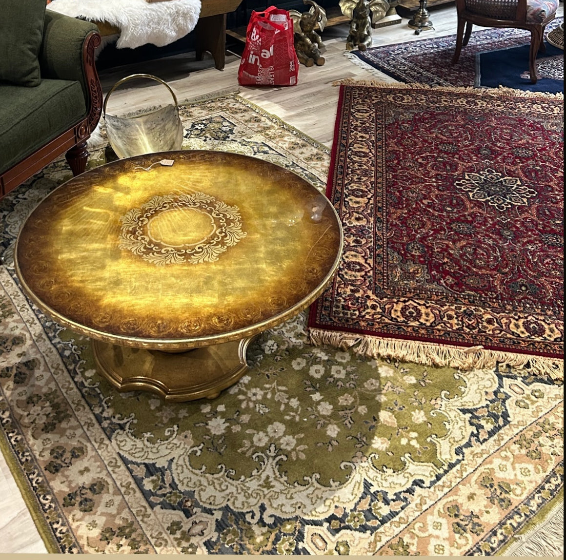 This Hollywood Regency coffee table is all about drama and effortless glamour. Its polished surface catches the light beautifully, creating a striking interplay of shine and shadow. With a sleek, circular design, it’s the kind of piece that anchors a room while sparking conversation.