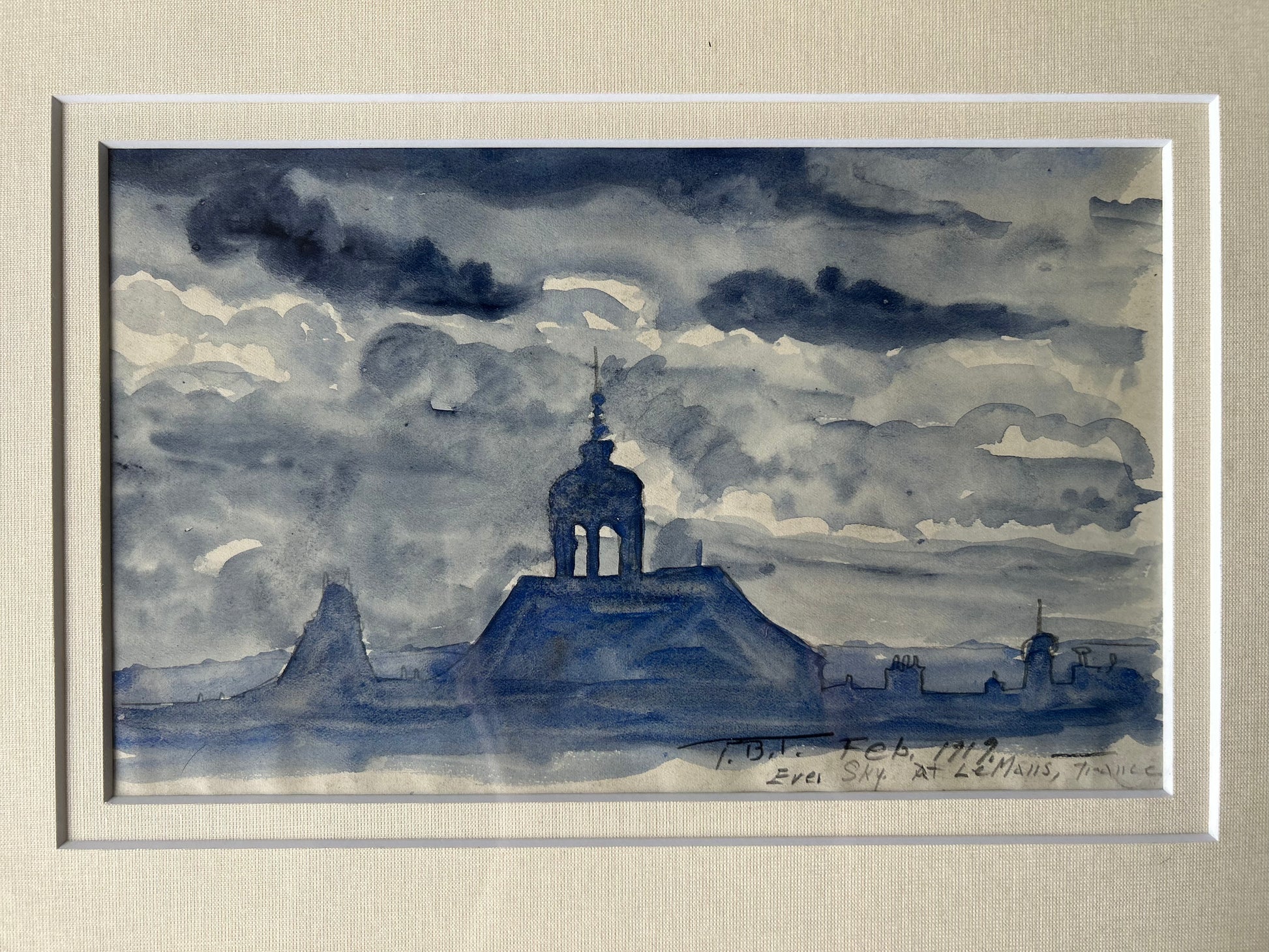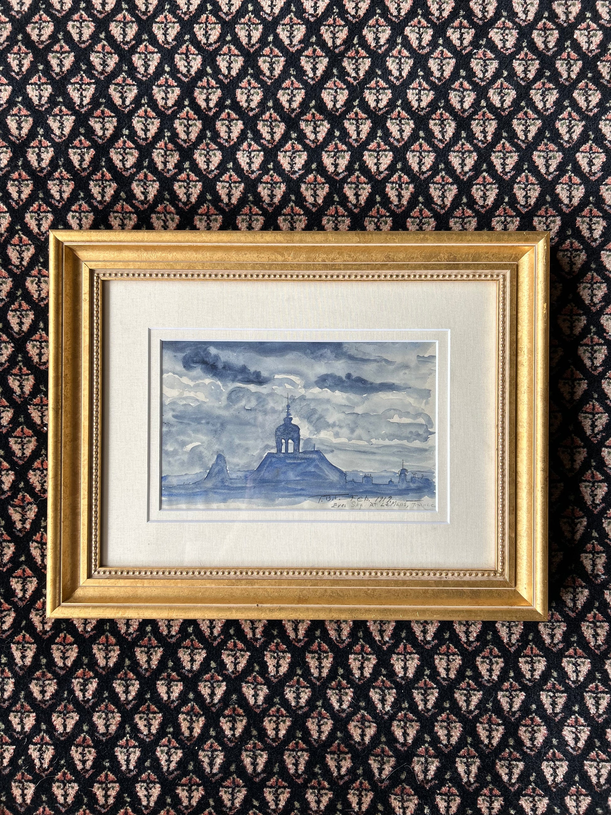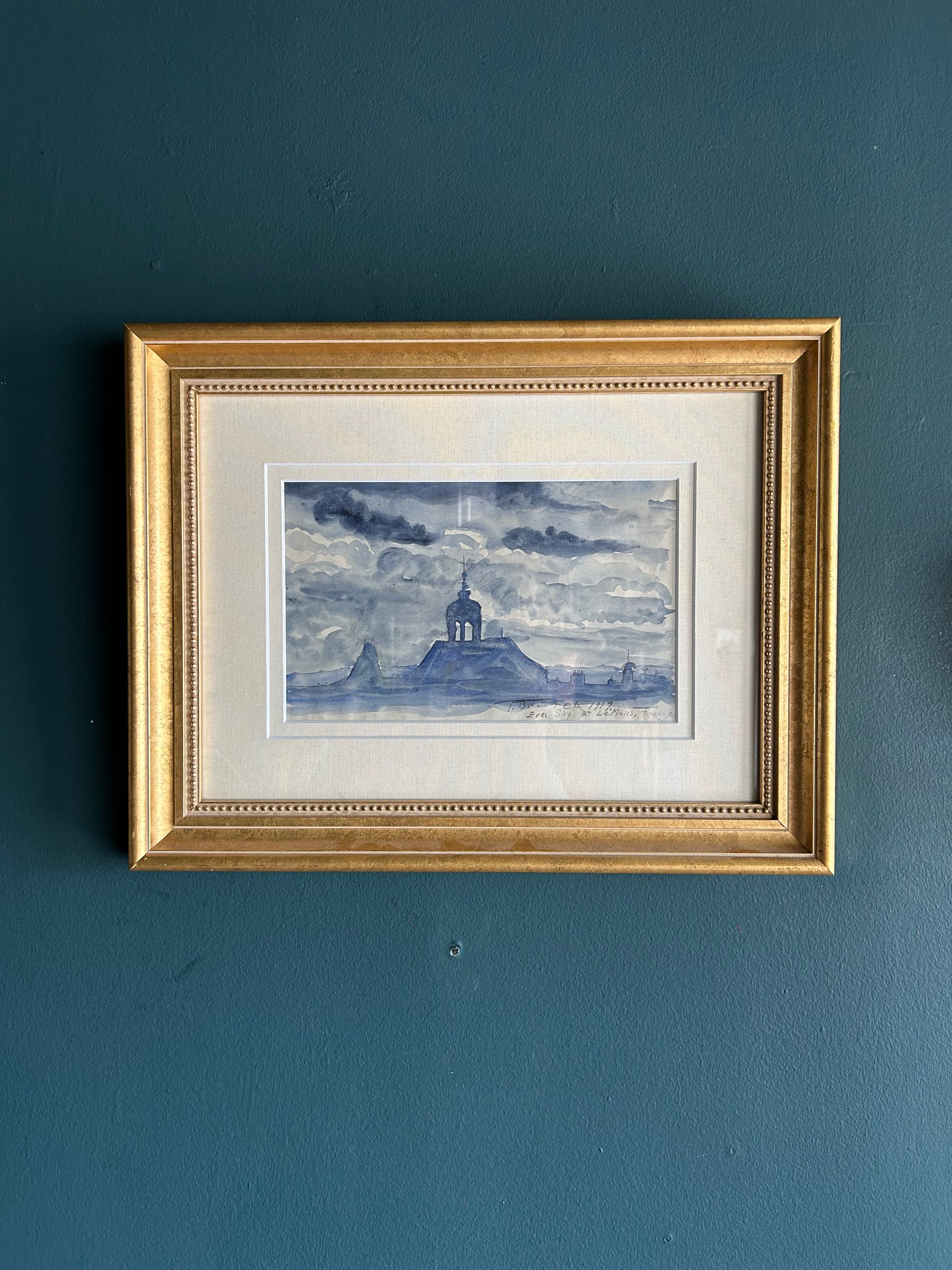 This original watercolor offers the captivating beauty of a moody skyline. The piece captures the essence of changing light and atmosphere, creating a sense of intrigue and mystery. The artist's skilled brushstrokes and use of color evoke an emotional response and a feeling of atmospheric wonder. The painting's subtle tonal variations and delicate washes create a sense of depth and movement.