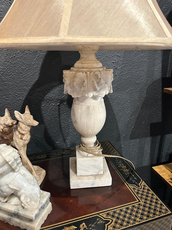 This pristine alabaster lamp is an absolute gem—the carved ‘elephant face’ detailing adds such a unique, sculptural touch. It’s the kind of piece that feels both refined and effortlessly distinctive, perfect for a collected, well-styled space.