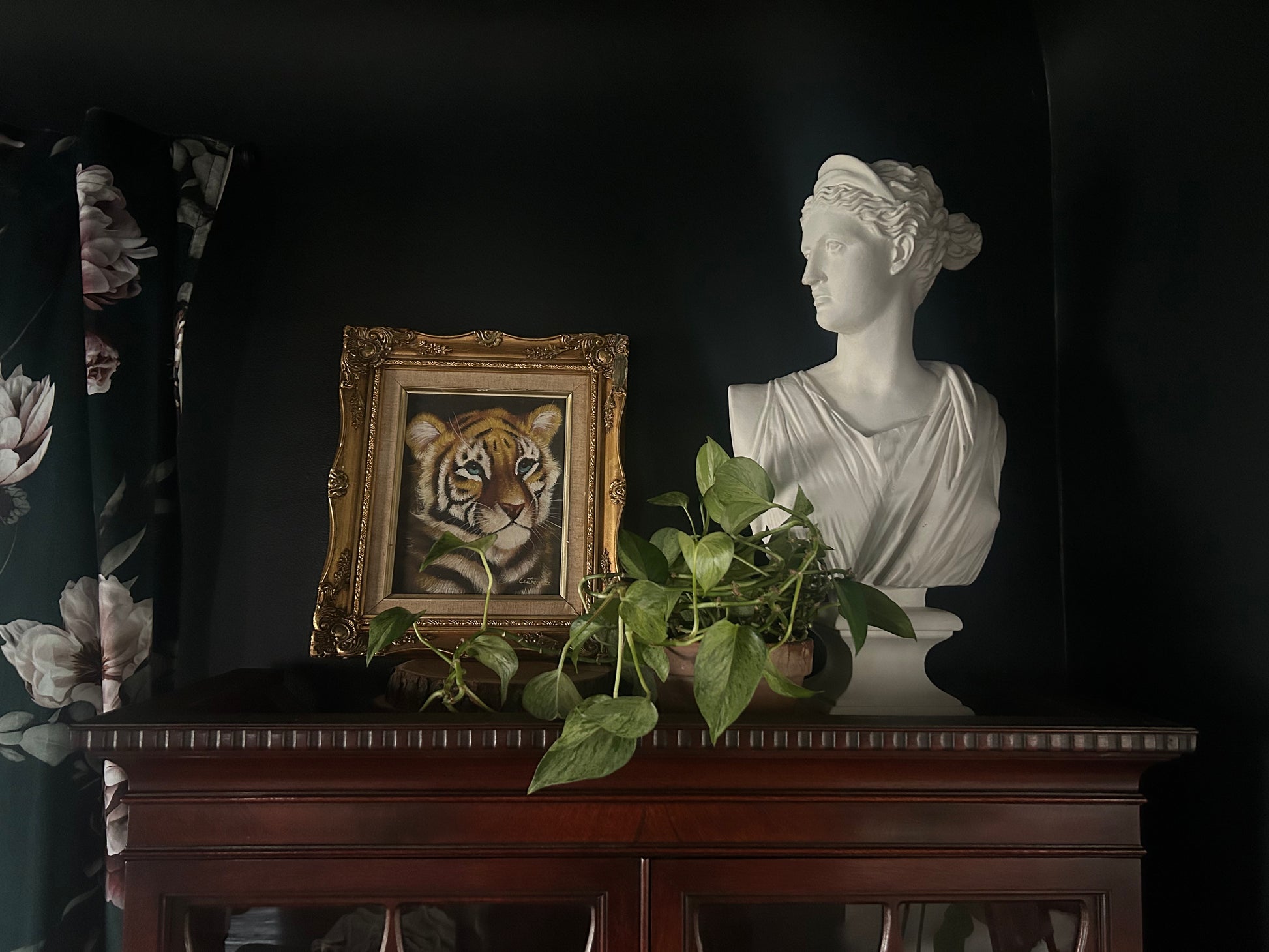 Rawr! This piece would be beautiful in a living room, bedroom, or study. perfect amount of charm---just what you need to spark a conversation.