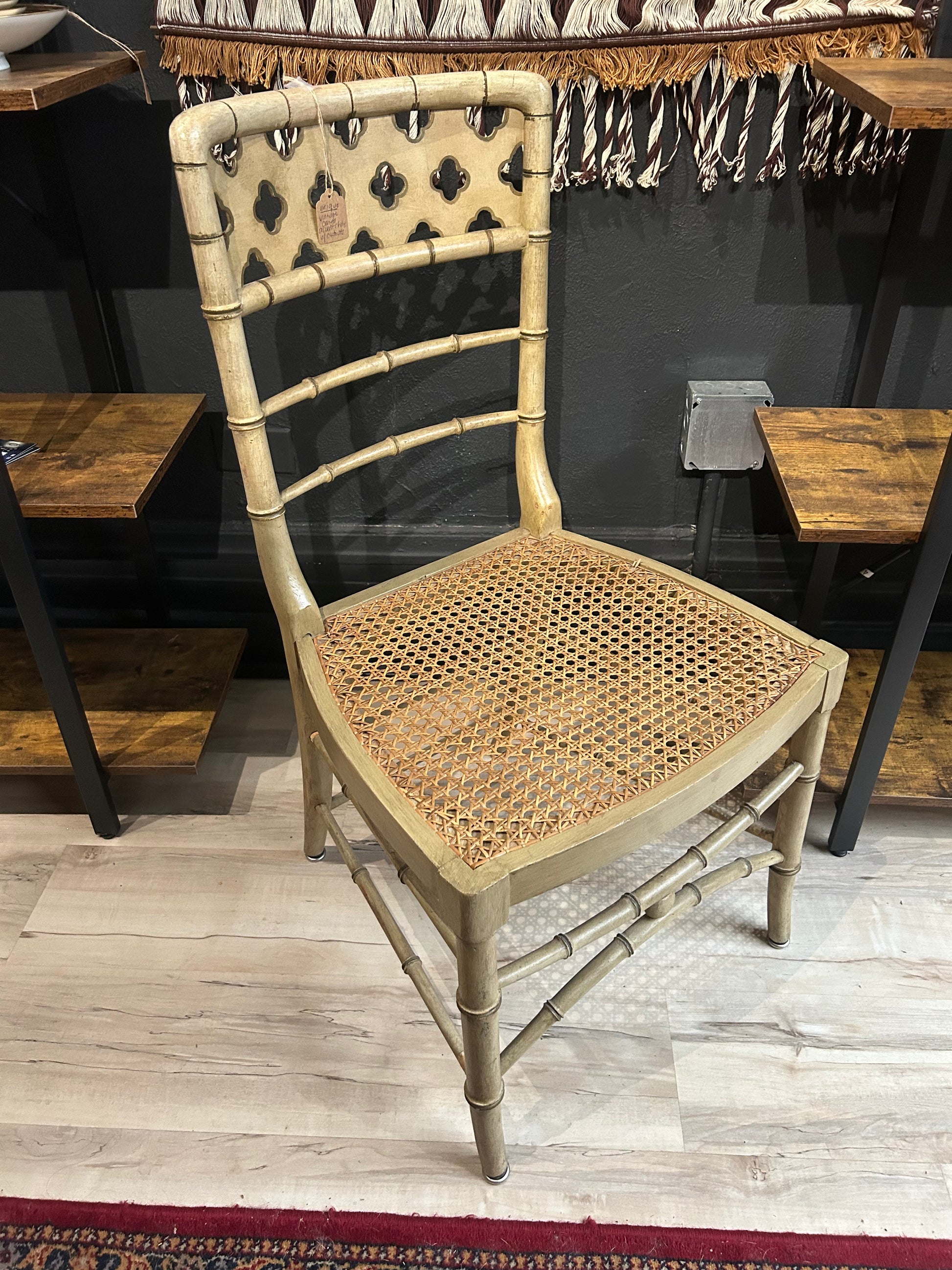These caned chairs are such a standout with their sculptural cutout back and elegant silhouette. They strike the perfect balance between vintage charm and modern sophistication—ideal for a dining space or as striking accent chairs.