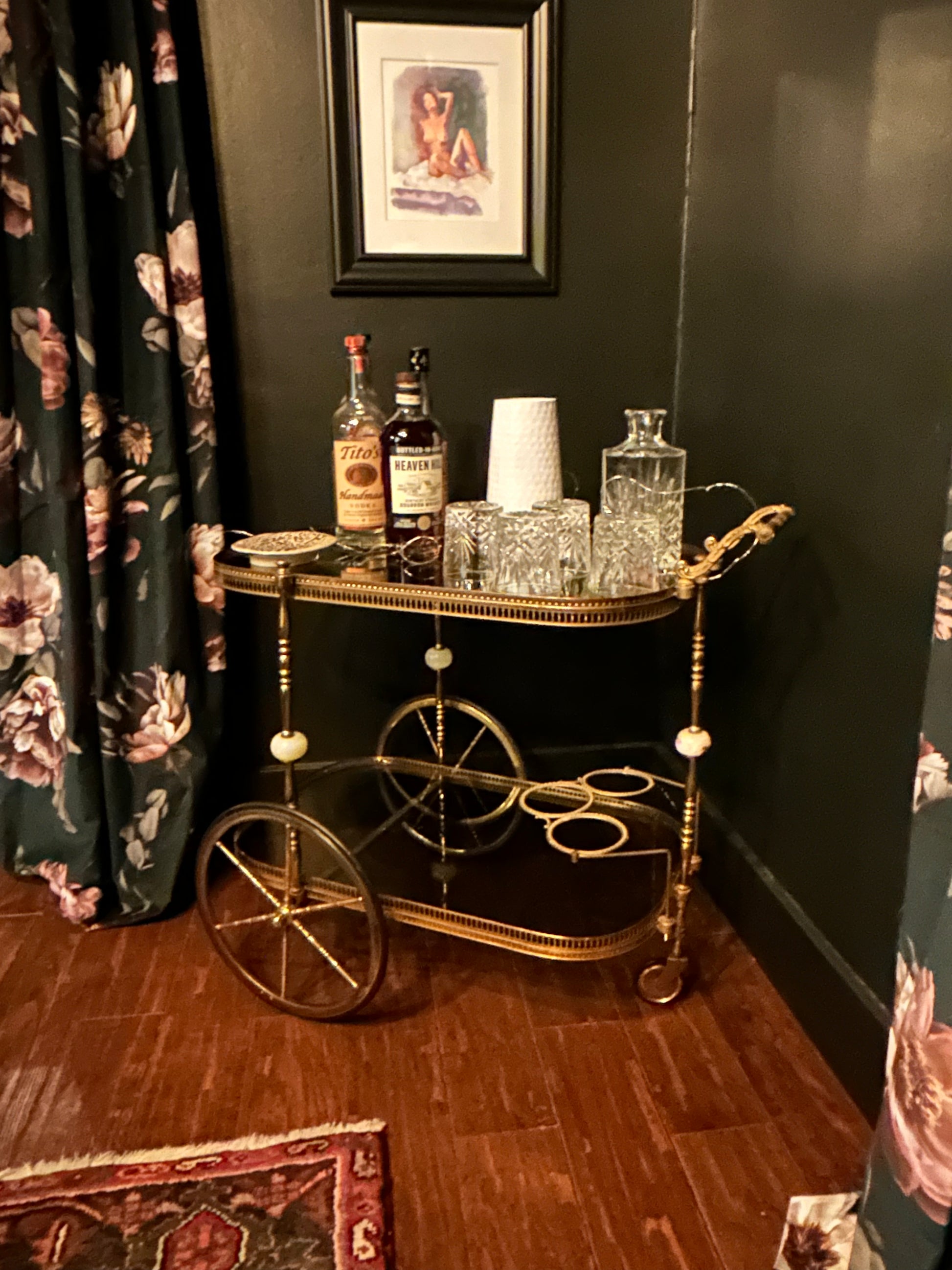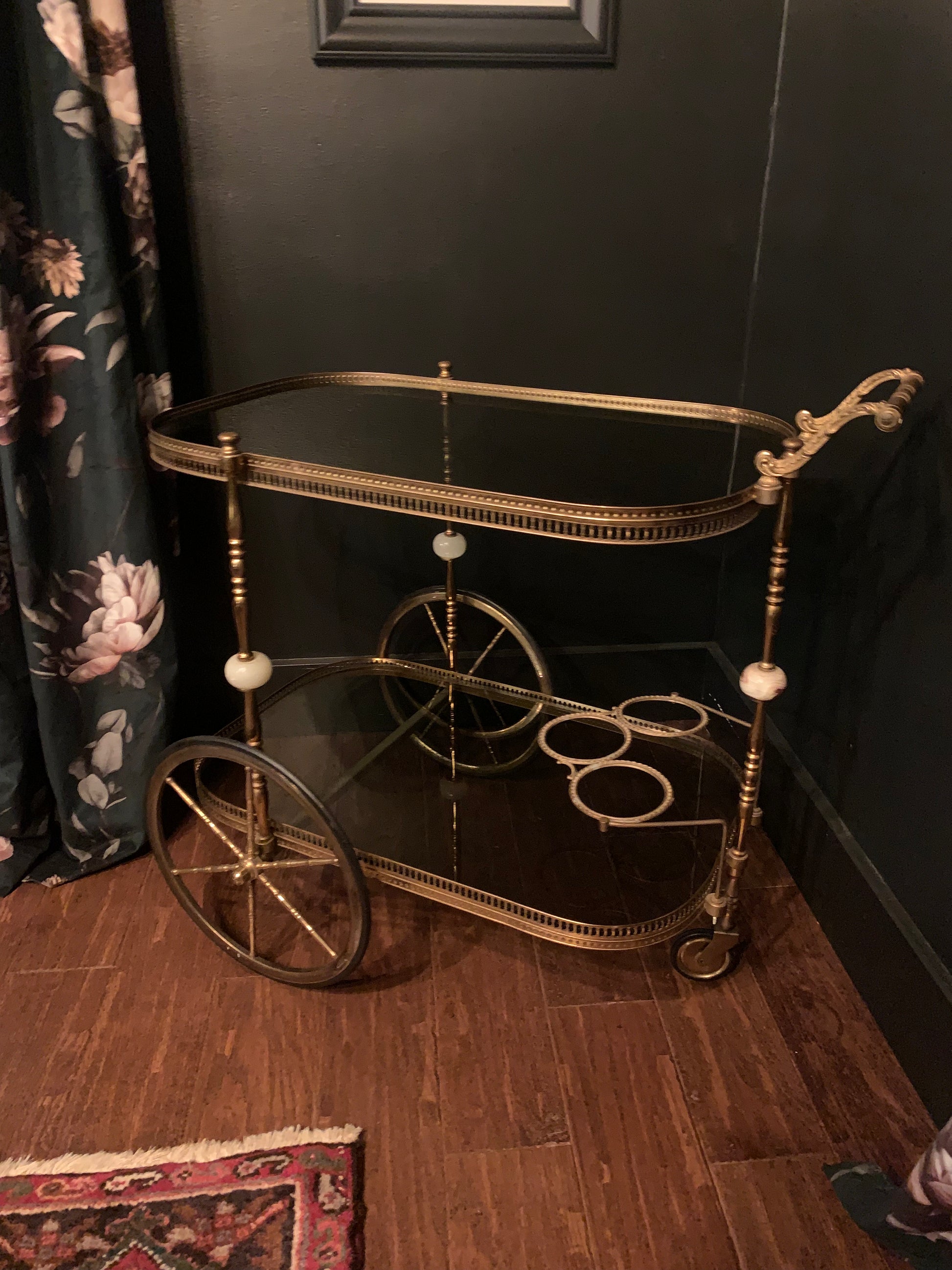 vintage neoclassical bar cart