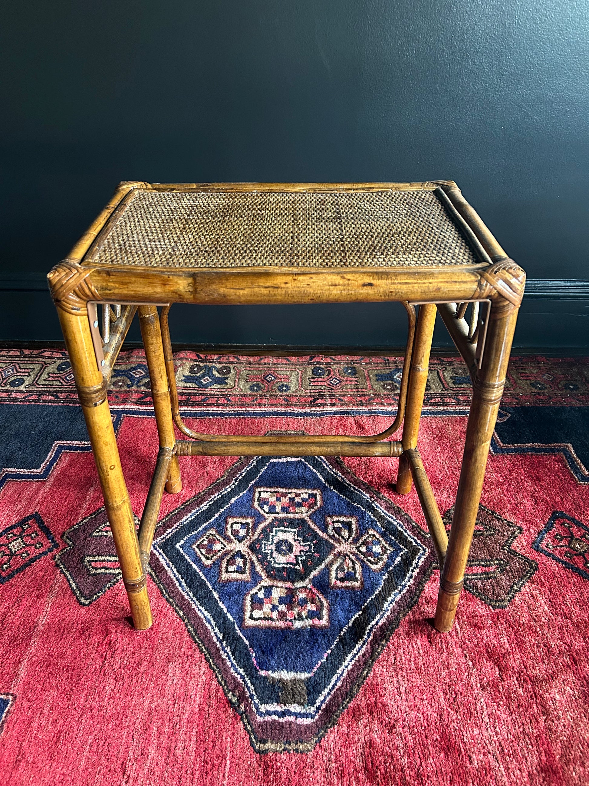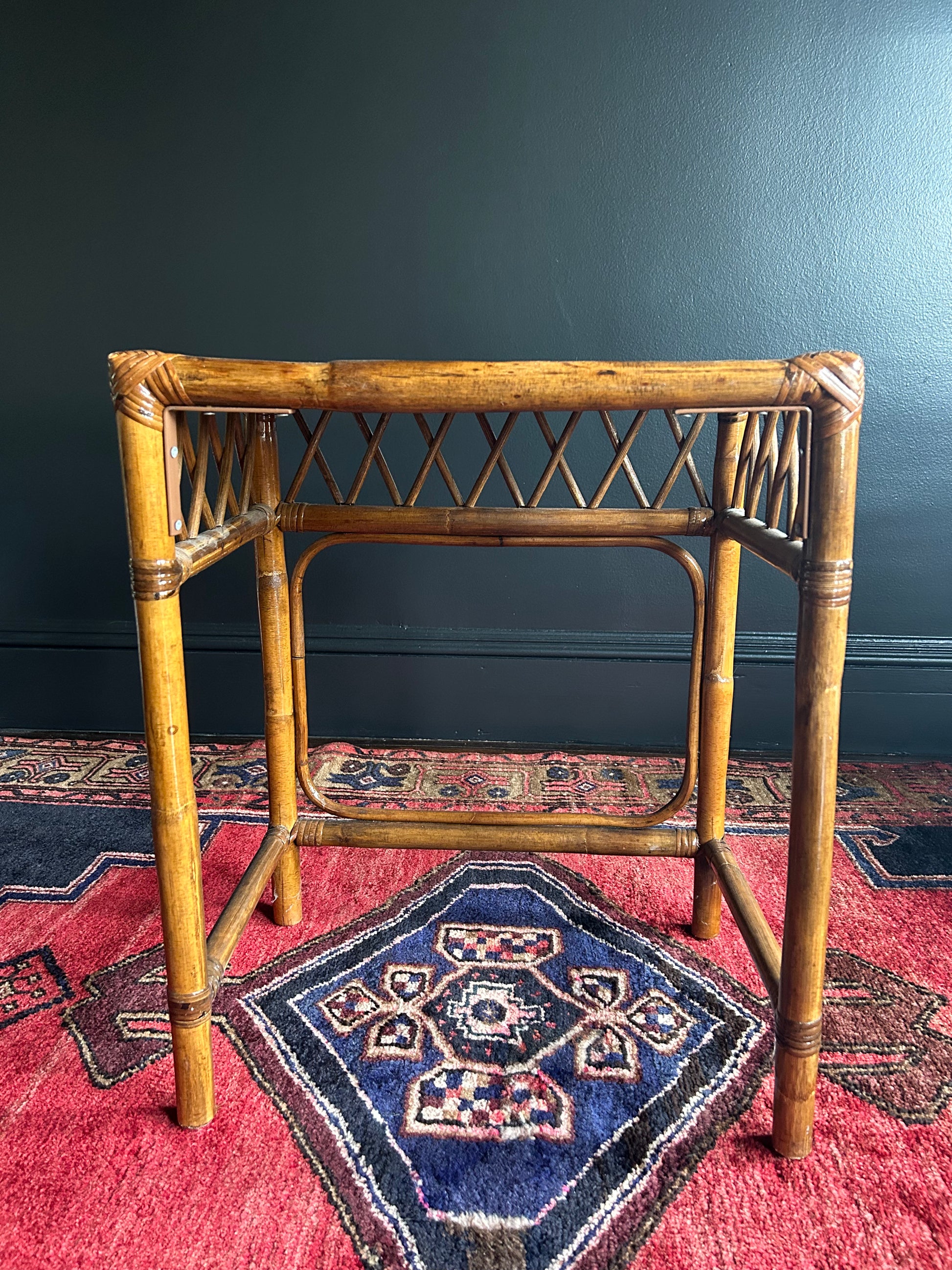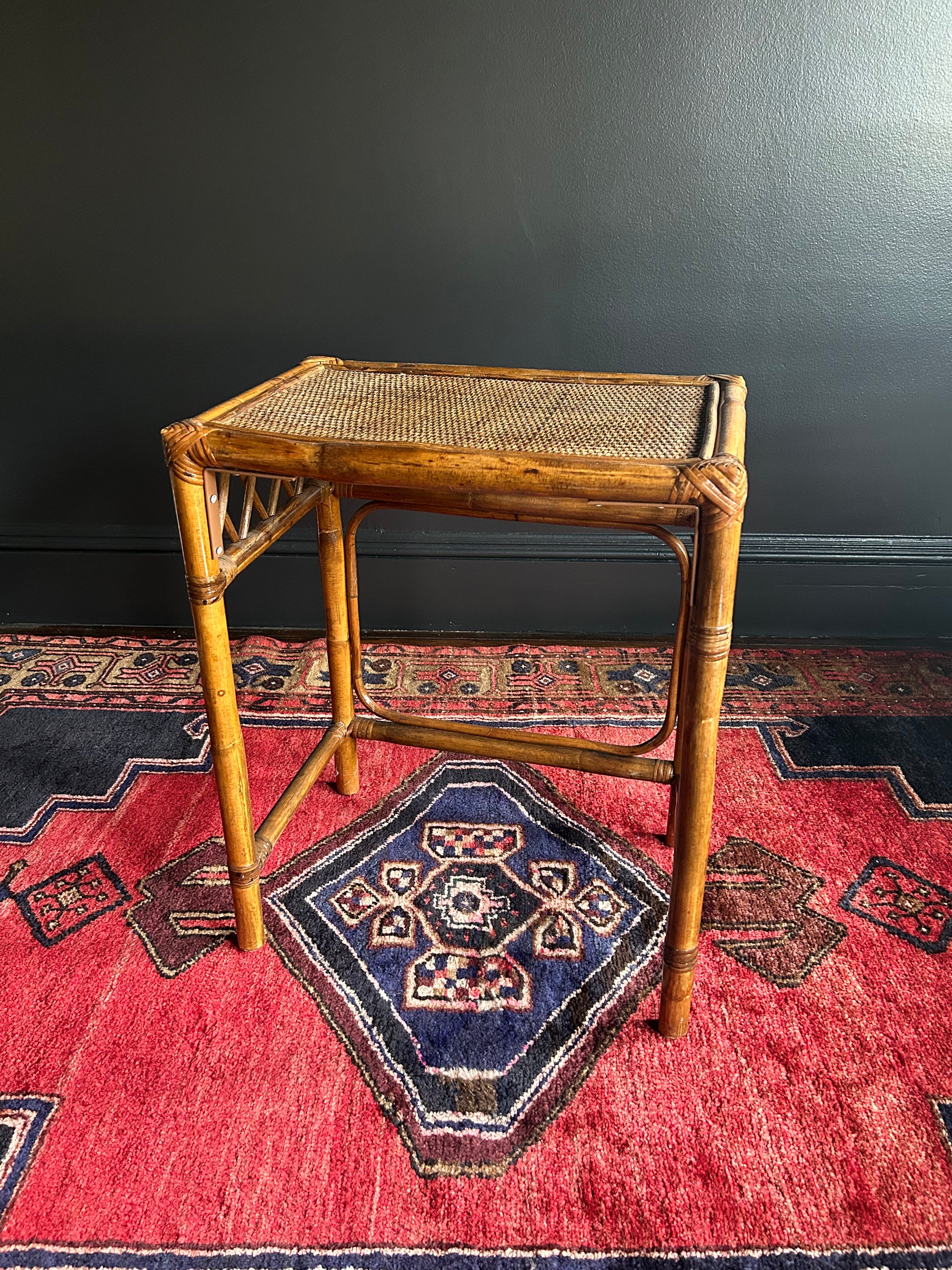 This vintage wicker and rattan side table showcases a beautiful bamboo and bentwood design that exudes mid-century charm. Its natural finish adds a touch of warmth and complements various home decor styles, making it perfect for boho chic and natural-themed interiors.Whether used as an end table, side table, foyer table, or porch table, this vintage piece brings character and style to any space. Embrace the natural beauty of rattan furniture with this versatility and timelessness.