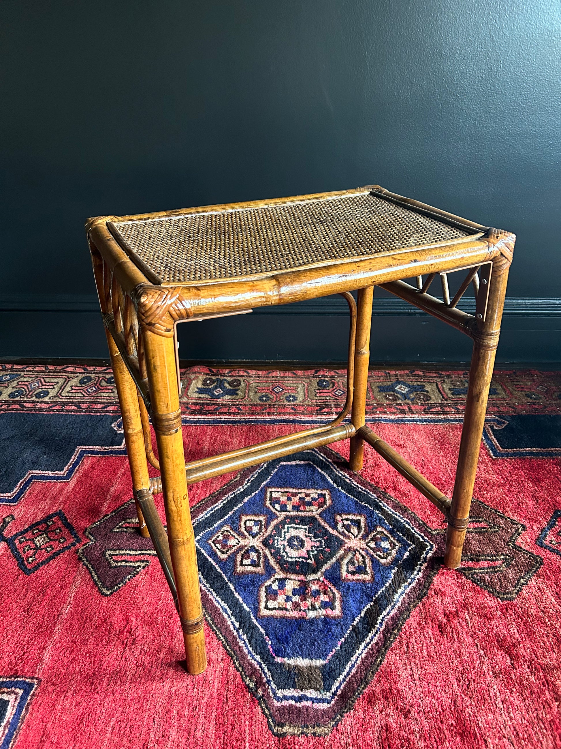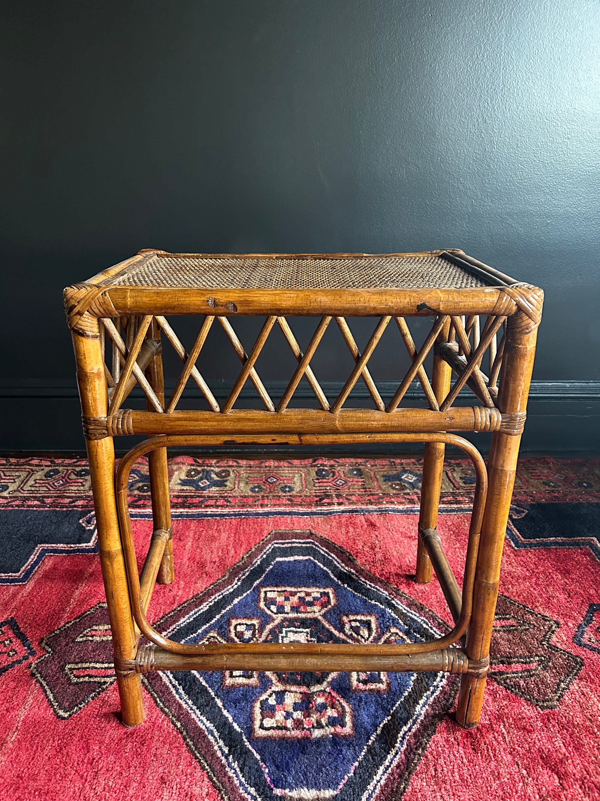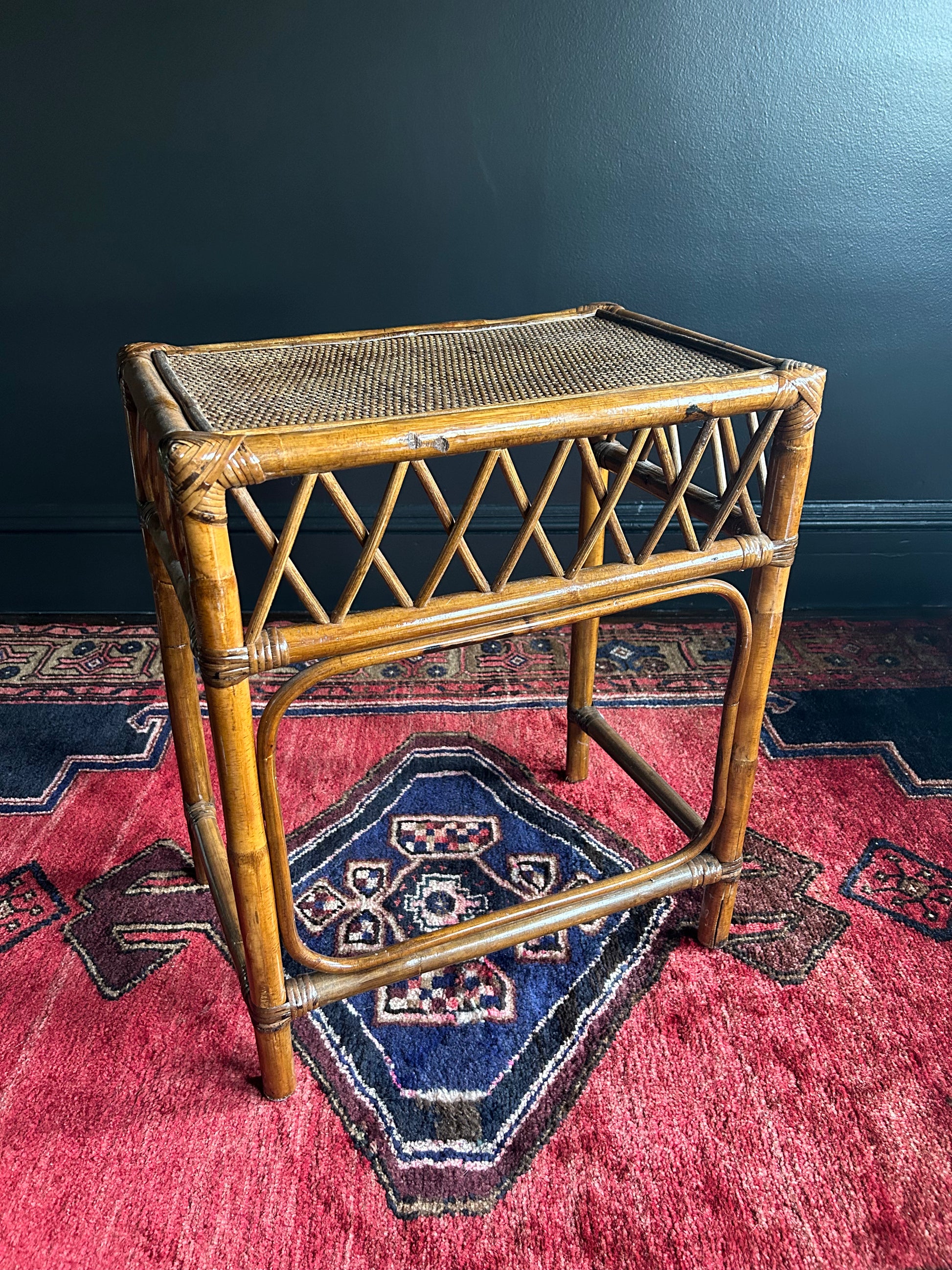 This vintage wicker and rattan side table showcases a beautiful bamboo and bentwood design that exudes mid-century charm. Its natural finish adds a touch of warmth and complements various home decor styles, making it perfect for boho chic and natural-themed interiors.Whether used as an end table, side table, foyer table, or porch table, this vintage piece brings character and style to any space. Embrace the natural beauty of rattan furniture with this versatility and timelessness.